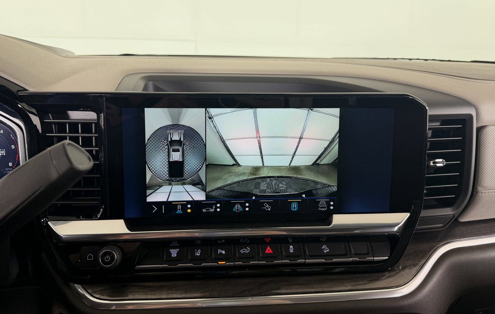 - Allows driver to see inside the cargo bed on the infotainment display to help with 5th wheel or gooseneck hitching and to check cargo