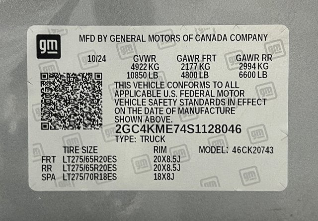 - Tires, LT275/65R20 all-terrain, blackwall